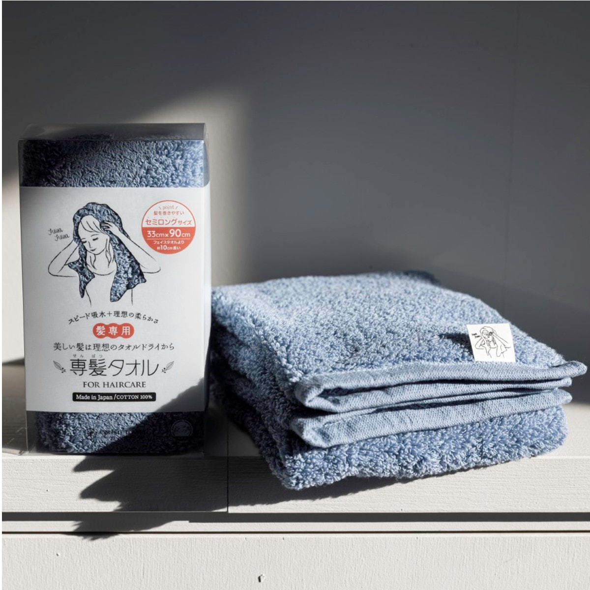 専髪タオル セミロング ブルーアッシュ(33×90cm)《日本アトピー協会推薦品》
