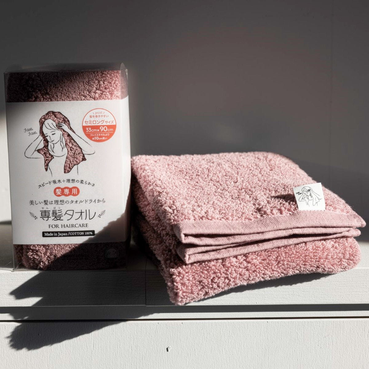 専髪タオル セミロング ローズピンク(33×90cm)《日本アトピー協会推薦品》