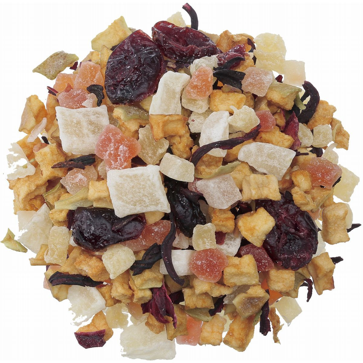 有機ドライアップル(オーストリア製造)、加糖ドライアロエベラ、加糖ドライクランベリー、加糖ドライパイナップル、加糖ドライパパイヤ、有機ハイビスカス/香料、クエン酸、保存料(亜硫酸塩)