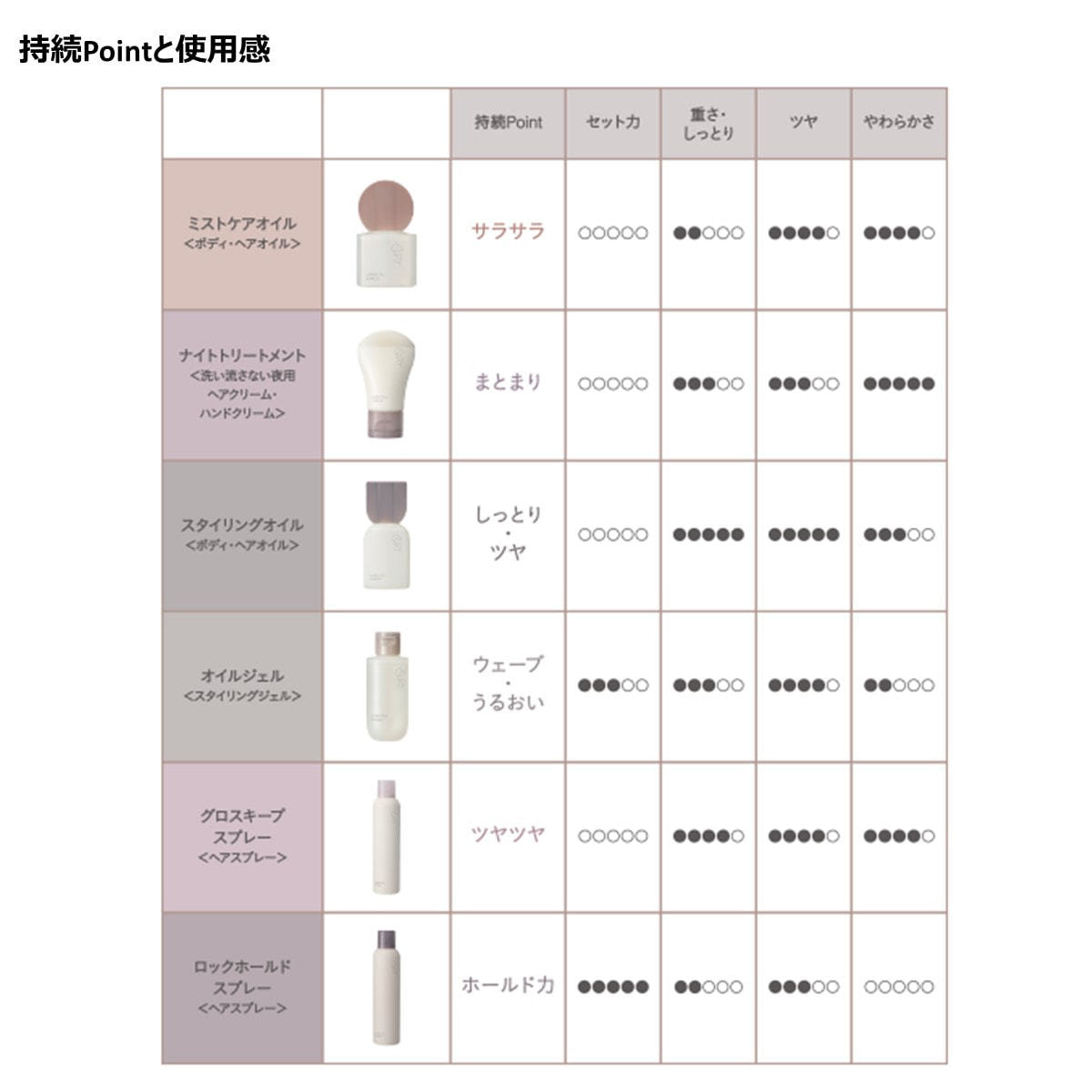オイルが苦手な細毛や軟毛の方や、巻き髪を固めずキープしたい方に。