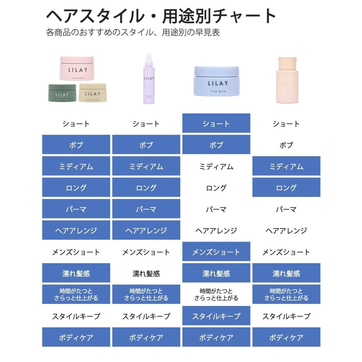 エチルヘキサン酸セチル、水、セタノール、シア脂、オリーブ果実油、ステアリルアルコール、ベヘニルアルコール、テトラオレイン酸ソルベス-30、スクワラン、ステアレス-2、パルミチン酸デキストリン、グリセリン、ペンチレングリコール、ミツロウ、カルナウバロウ、ホホバ種子油、ステアロキシプロピルトリモニウムクロリド、水添レシチン、トコフェロール、ベタイン、加水分解ケラチン、センチフォリアバラ花水、イチョウ葉エキス、キハダ樹皮エキス、ハマメリス水、ニオイテンジクアオイ油、パルマローザ油、ラベンダー油、イランイラン花油、コリアンダー果実油、ローマカミツレ花油、マンダリンオレンジ果皮油、オレンジ油、ウイキョウ果実油、BG、フェノキシエタノール