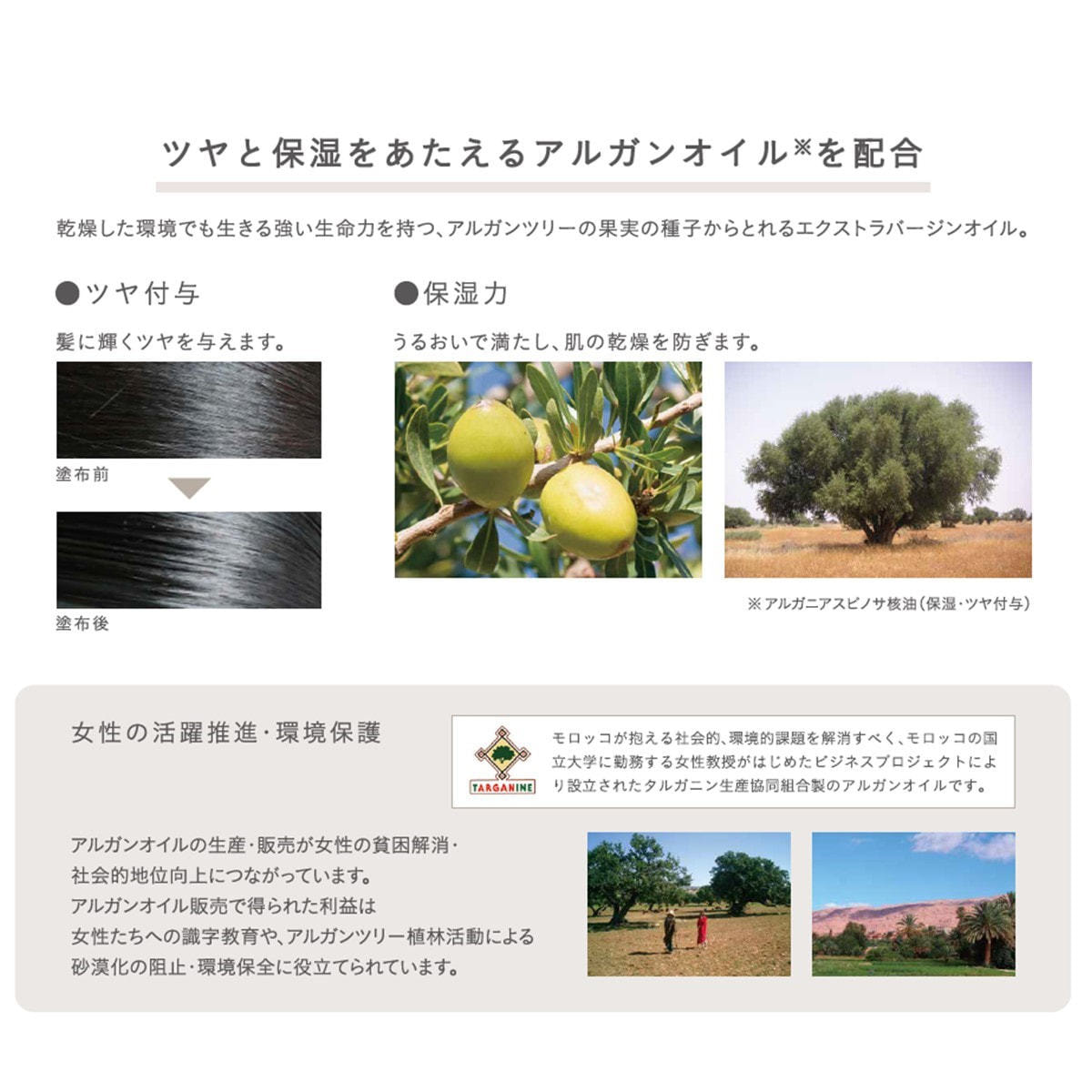 ツヤと保湿をあたえるアルガンオイル※配合