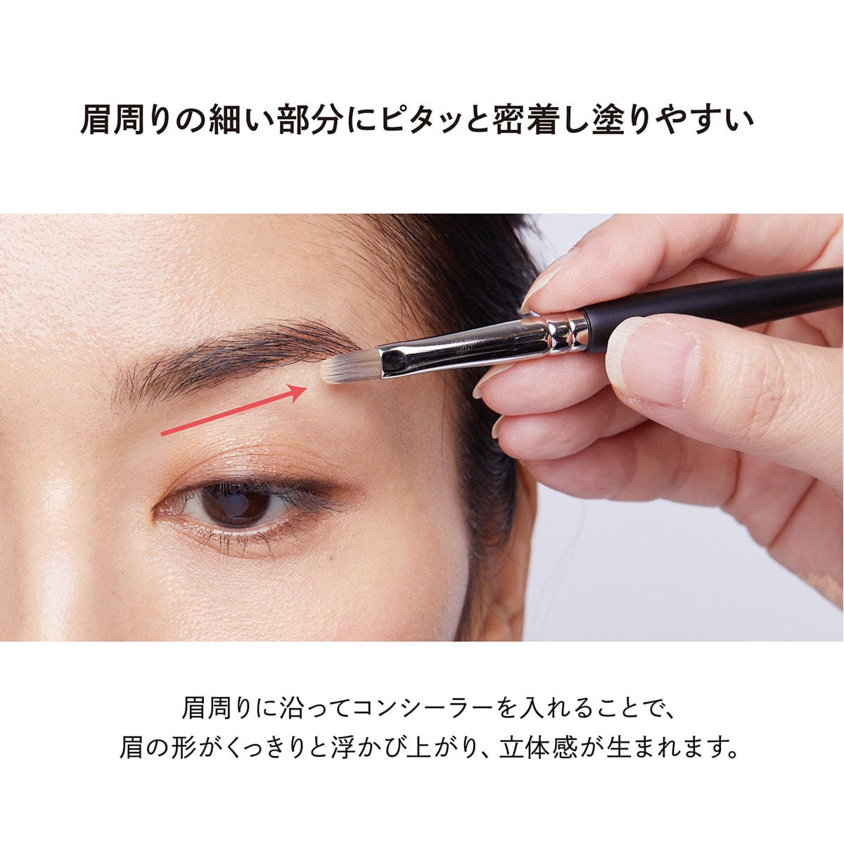 眉まわりなど凹凸のある場所や細かい場所にもフィットする コンシーラーブラシ。