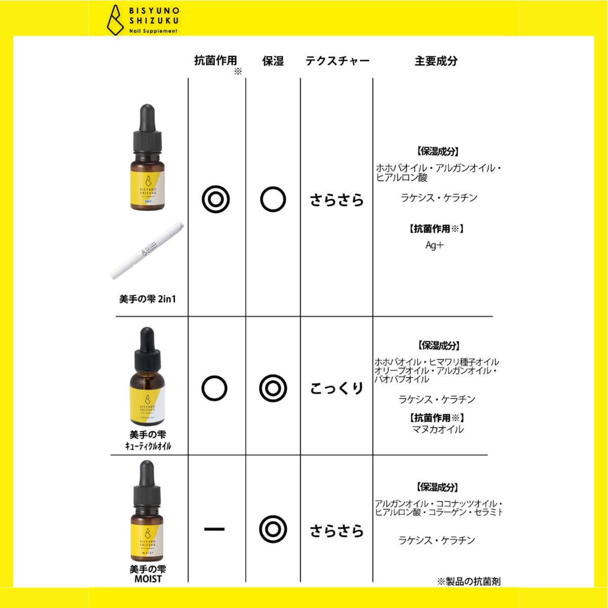 保湿成分として5種類の天然オイルを配合し、爪周りの潤いをしっかり保ちます。