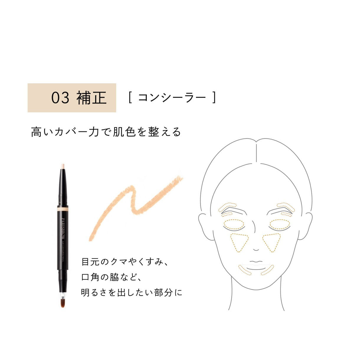 03 補正 ⽬元のクマやくすみなど、明るさを出し たい部分に