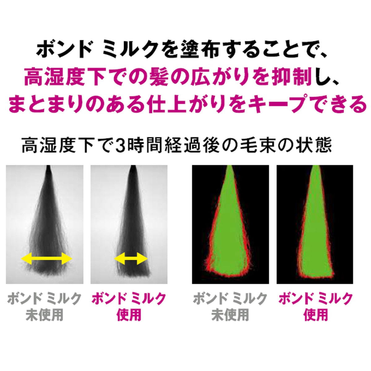 ブリーチ・ハイトーン毛用の処方設計で、うるおってまとまり、指どおりのよい仕上がり。その後のスタイリングも自由自在。
