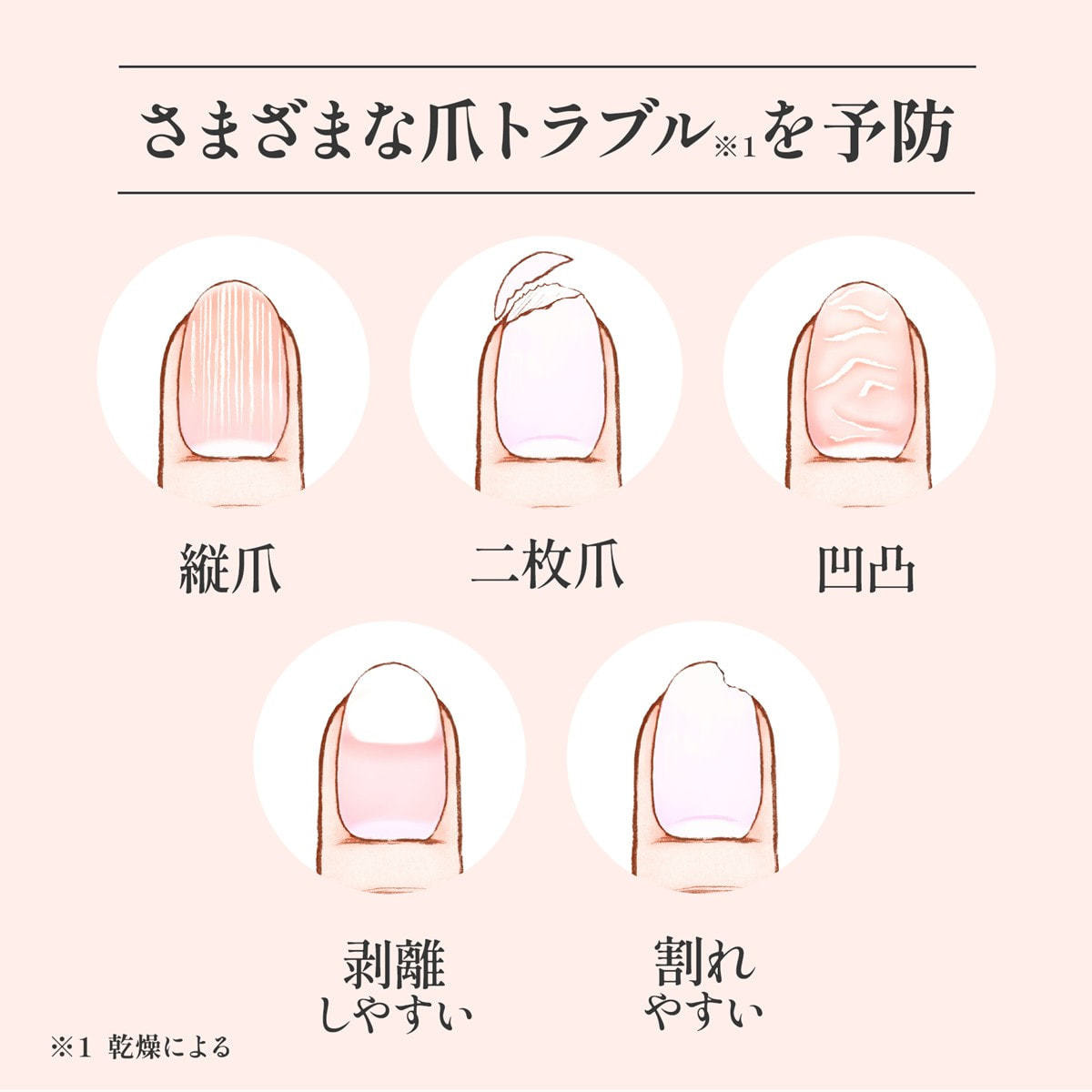 爪の縦ジワ、凹凸、二枚爪、割れ爪などのさまざまな爪トラブルを予防する美容液。