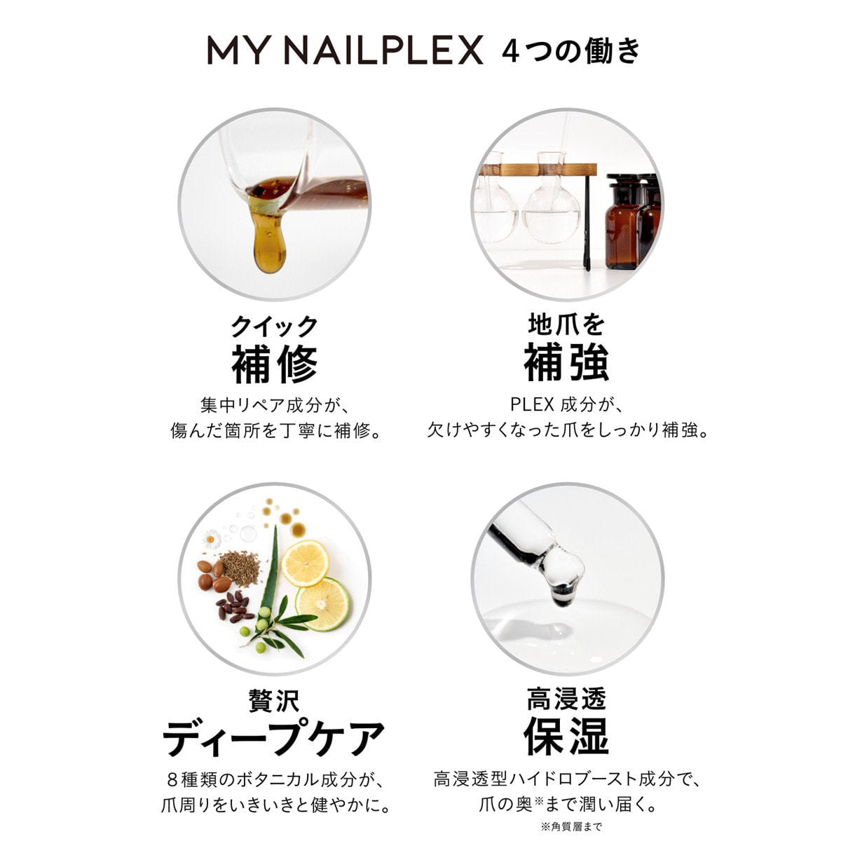 爪のために開発された補修・補強成分が、爪を美しく整えながらしっかりとプロテクト。