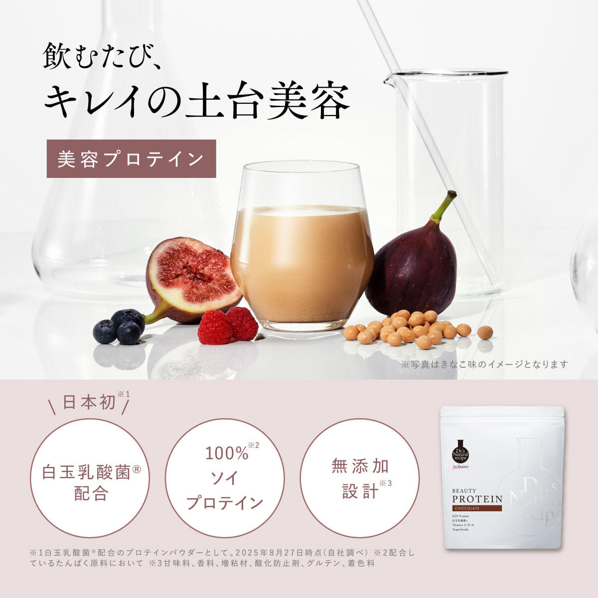 Dr.'s Natural recipeの美容プロテインシリーズは、たんぱく質を補給しながら、腸活*3と美容ケアができる、「美しさの土台をつくる」美容プロテインです。