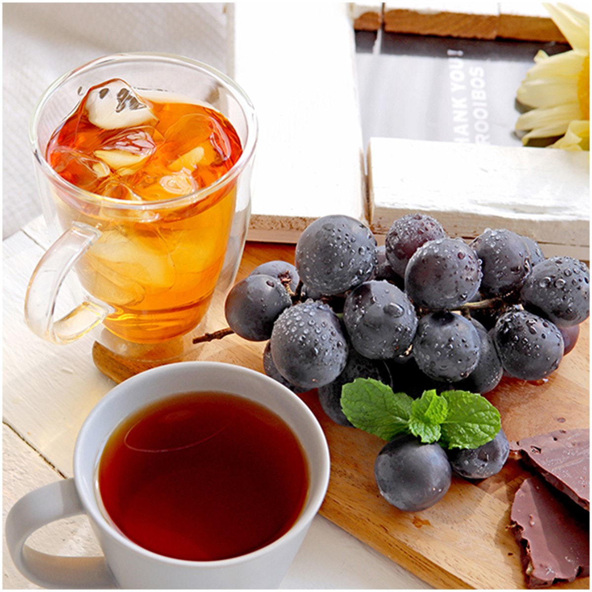 ベースのピュアルイボスティーが風味を引き立たせ、ホットでもアイスでも甘く芳醇な香りが口いっぱいに広がる贅沢なお茶に仕上がりました。