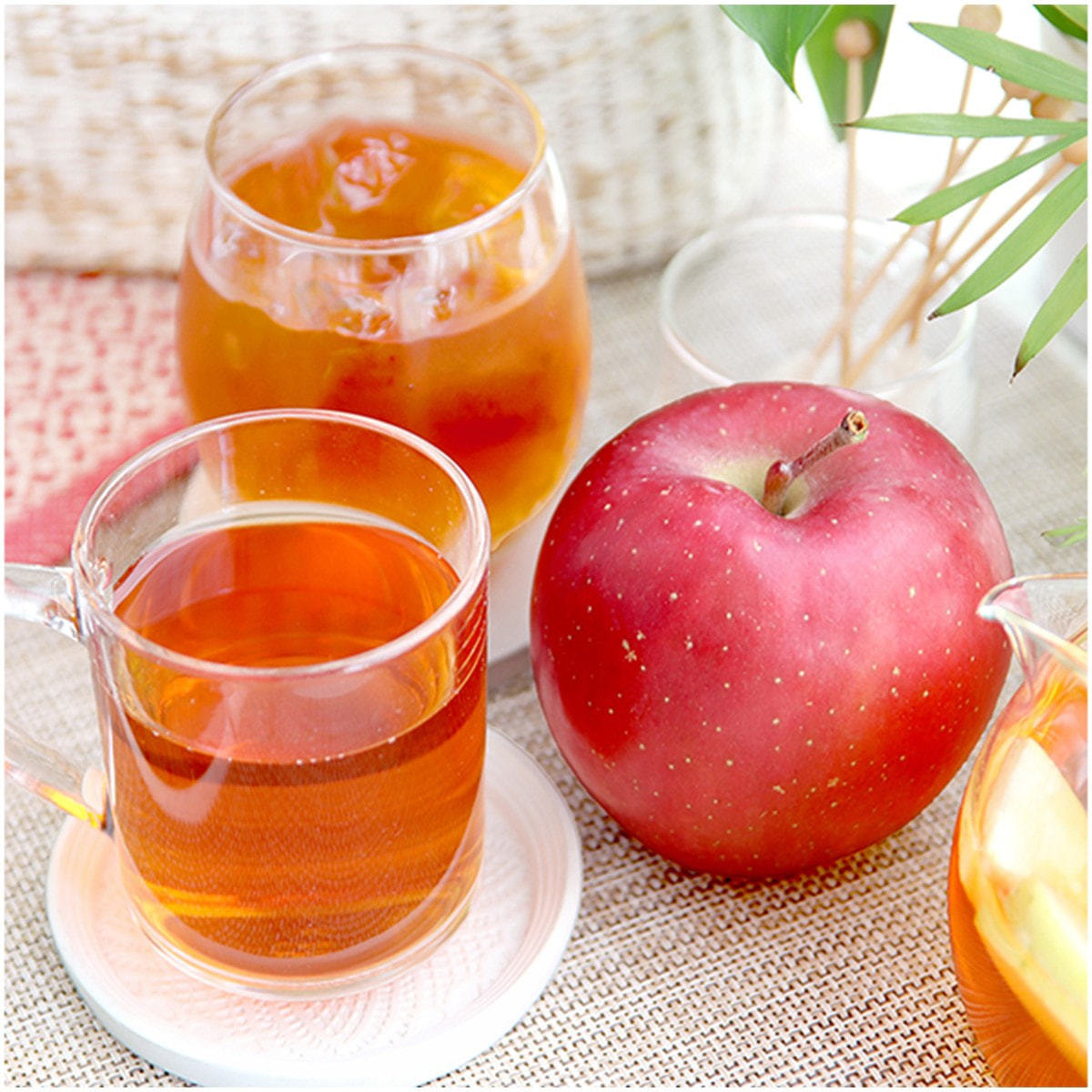 ピュアルイボスティーベースなので渋みがなく、少しのコクとまろやかな風味に、アップルの爽やかな甘さが相性ぴったり。